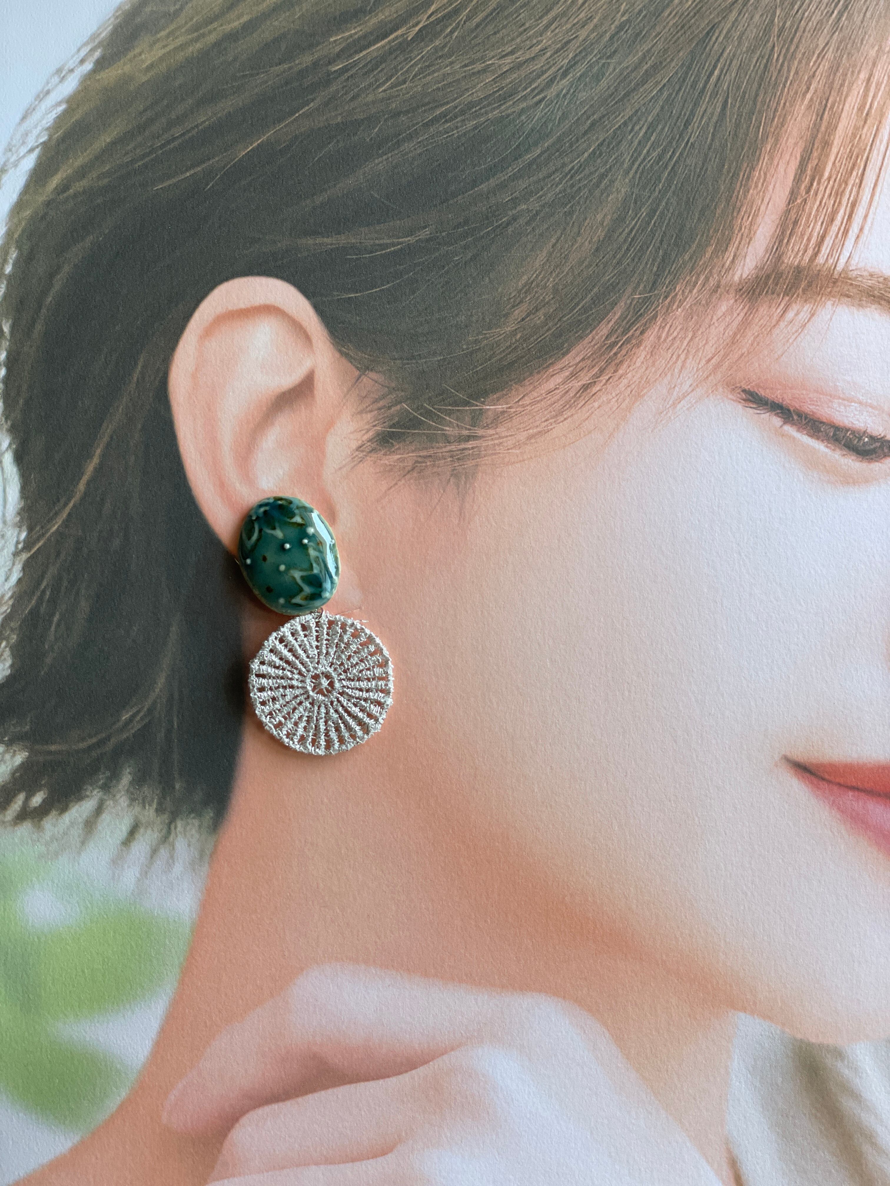 《イヤリング》陶器(アンティーク調×レース)イヤリング✧︎一点もの